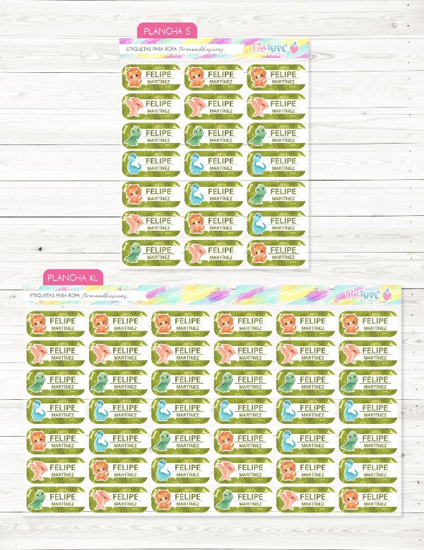 Etiquetas DTF termotransferibles para planchar, ideales para identificar ropa escolar y de uso diario.