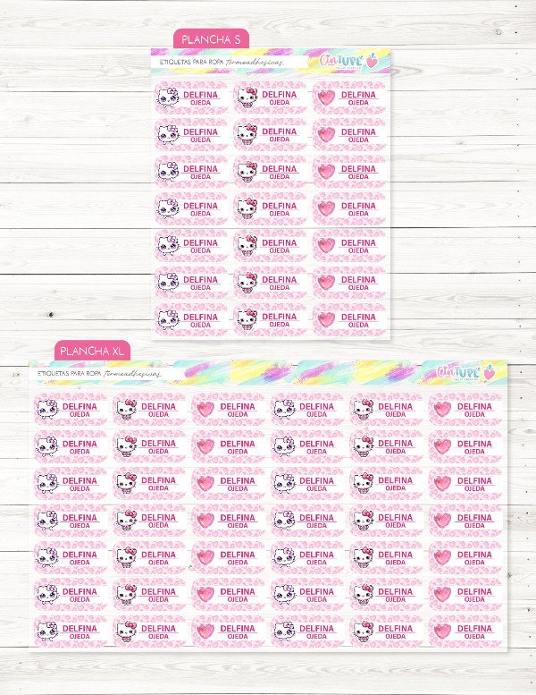 Etiquetas DTF termotransferibles para planchar, ideales para identificar ropa escolar y de uso diario.